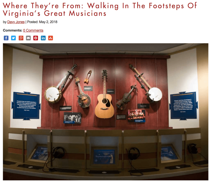 Hot off the blog presses — my latest post for Virginia’s Travel Blog is up! I explored a few ways you can walk in the footsteps of some of Virginia’s musical legends, from Ralph Stanley and Dave Matthews to Bruce Hornsby and René Marie.